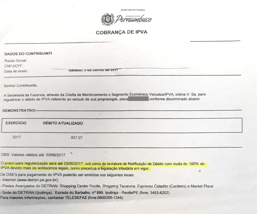 O parlamentar lembra que, no caso do IPVA, a população está sendo penalizada duas vezes. “Primeiro porque, no começo do ano, o governador Paulo Câmara antecipou o vencimento do imposto para fevereiro, pegando o contribuinte de surpresa. Agora, quem atrasar terá que pagar dobrado”, reforçou.
