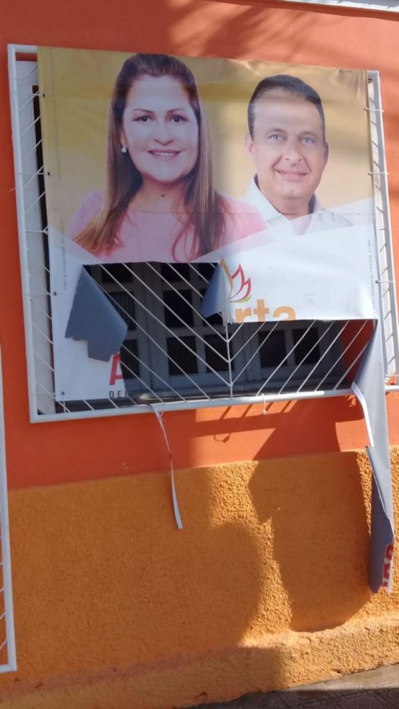 Banners que ficam no comitê da candidata à reeleição, deputada estadual Roberta Arraes, amanheceram rasgados e destruídos.