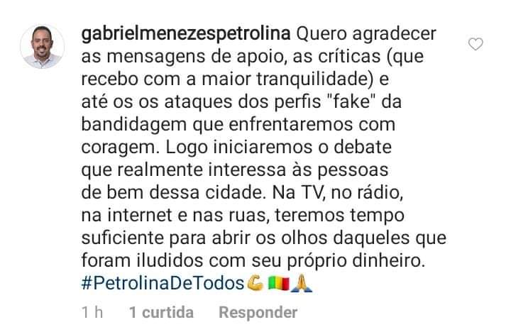 Gabriel agradece mensagens de apoio após convenção e ‘detona’ fake da bandidagem