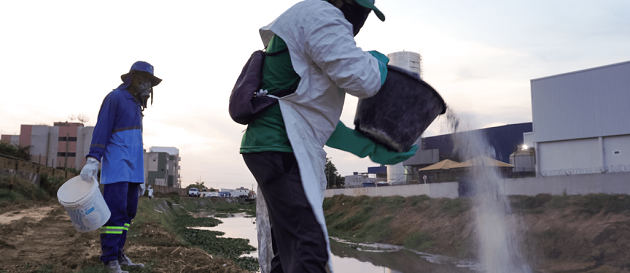 A aplicação do Óxido de Cálcio (CaO) é feita de dois em dois meses. O produto mata as larvas. “Estamos dando sequência ao trabalho que mudou a realidade de Juazeiro, promovendo a desobstrução e limpeza de canais e aplicando larvicidas biológicos para evitar a multiplicação dos mosquitos”, enfatiza a diretora-presidente do SAAE, Josilene Alexandre.