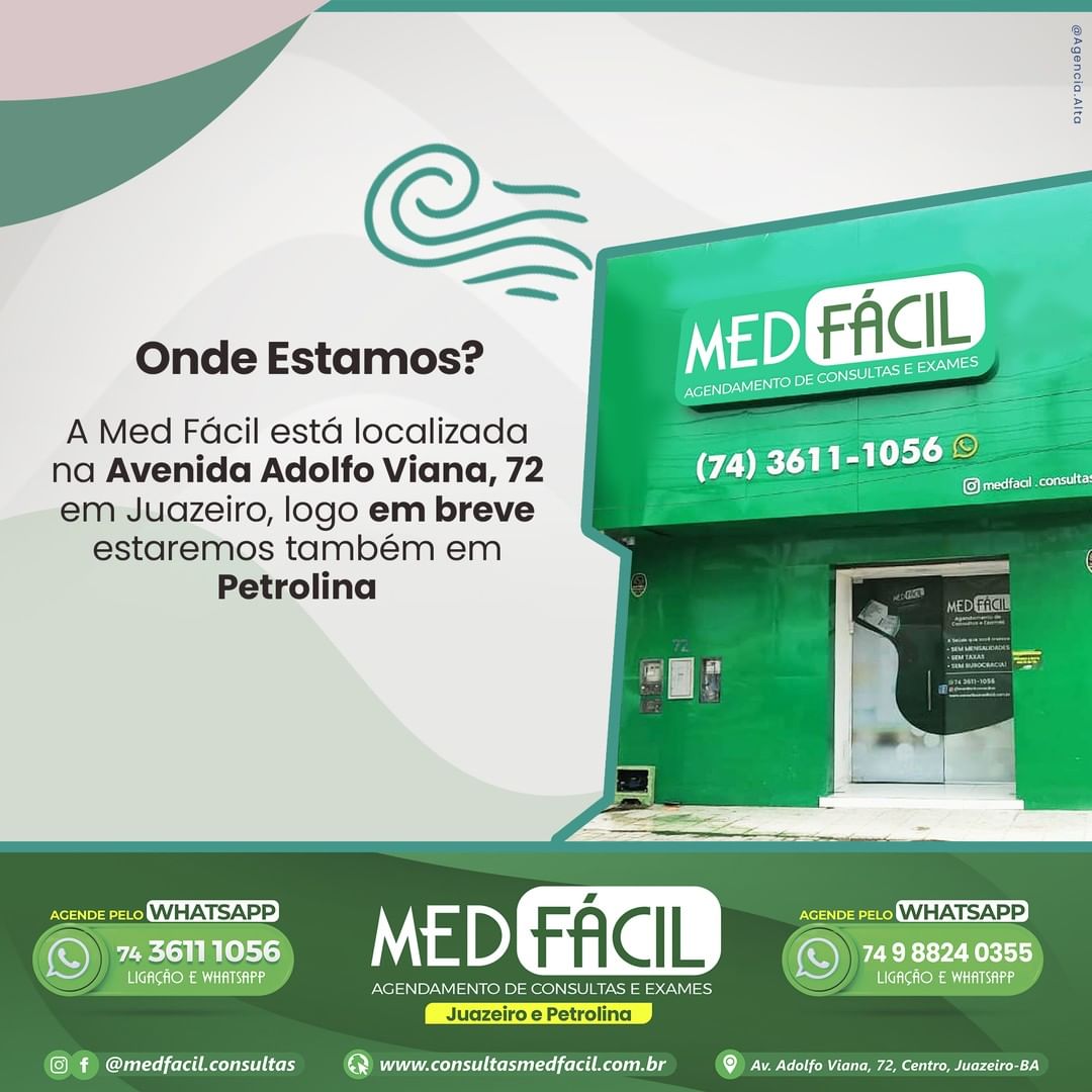 Após grande sucesso e aceitação da sociedade juazeirense e cidades circunvizinhas no tocante a área de agendamentos de consultas e exames com médicos e médicas, profissionais gabaritados na medicina da região, a Med Fácil atravessa a Ponte Presidente Dutra e chega a Petrolina, no Sertão de Pernambuco, nesta quarta-feira (15 de dezembro).