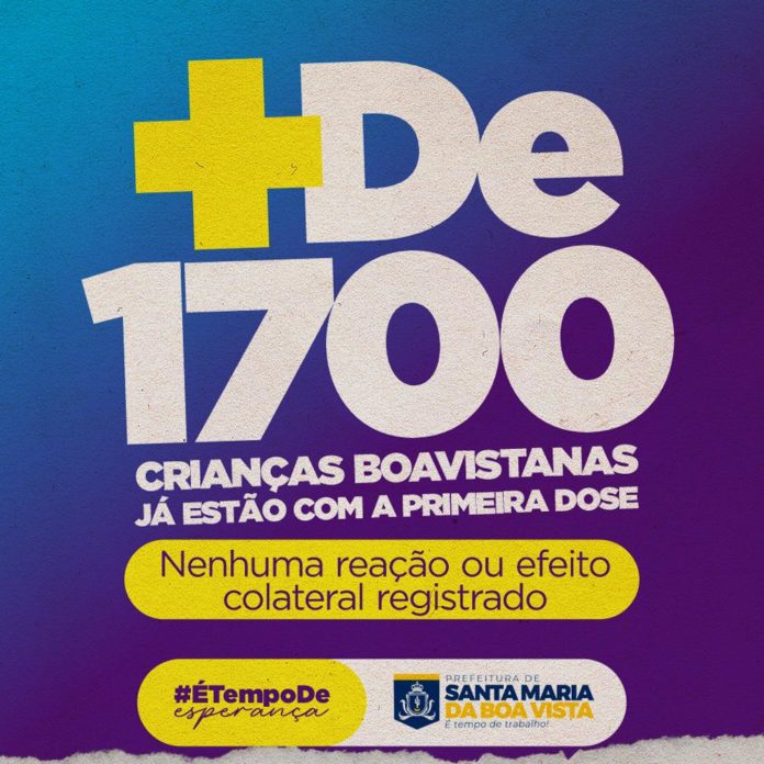 COVID-19: Mais de 1.700 crianças já receberam a 1ª dose da vacina em Santa Maria da Boa Vista