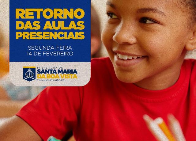 Nesta segunda-feira (14), as aulas presenciais do ano letivo 2022 terão início para mais de 7 mil alunos da rede pública municipal de Santa Maria da Boa Vista. Medidas firmes de prevenção ao COVID-19 estão sendo tomadas, com o intuito de garantir um ambiente escolar seguro e qualificado.