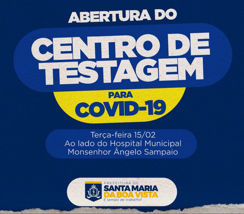O horário de funcionamento do Centro de Testagem será de 7h30 às 11h30 e de 13h30 às 17h30. Santa Maria da Boa Vista não possui pacientes na UTI e não registra óbitos por COVID há mais de 2 meses. Atualmente, o município conta com 119 casos ativos.