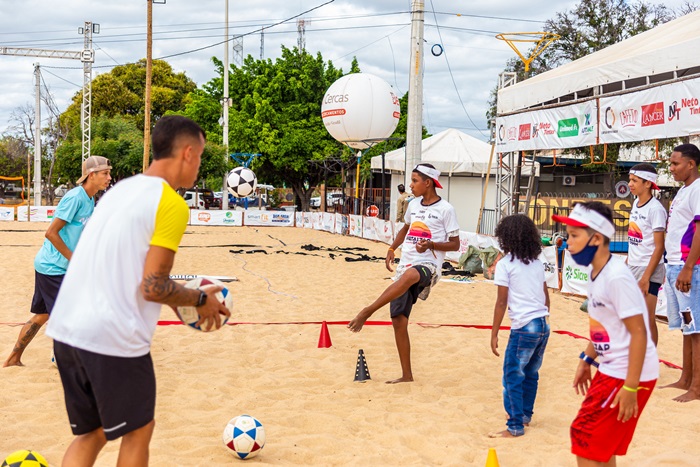 Com organização do Portal Zap e parceria da Prefeitura de Juazeiro e o jogador Petros, o evento esportivo proporcionou à crianças e adolescentes atendidos pelos Serviços de Fortalecimento e Convivência de Vínculos (SCFV), da Unidade de Acolhimento Casa Messe, do Centro de Referência Especializado em Assistência Social (CREAS) e APAE, vinculados à Secretaria de Desenvolvimento Social e Diversidade (SEDES), uma oficina de beach tennis e futevôlei durante a tarde desta quinta-feira (07).
