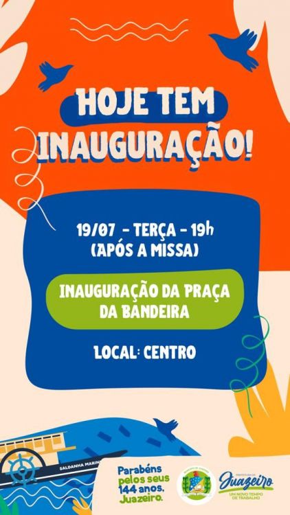 Seguindo o cronograma de ações em comemoração ao aniversário de 144 anos de Juazeiro, a Prefeitura Municipal convida a população para receber mais uma obra: a requalificação da Praça da Bandeira, no centro da cidade. A solenidade de entrega do espaço totalmente revitalizado acontecerá nesta terça-feira (19), às 19h.