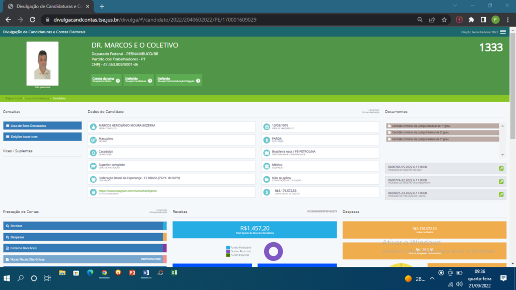 Conhecido nas redes sociais como o maior defensor de Lula e crítico ferrenho do presidente Jair Bolsonaro, o candidato a deputado federal, Doutor Marcos Ortopedista virou vítima do PT, uma vez que o partido não enviou um centavo. O que consta apenas é uma doação de amigos e do próprio candidato que não chega a mil e quinhentos reais.