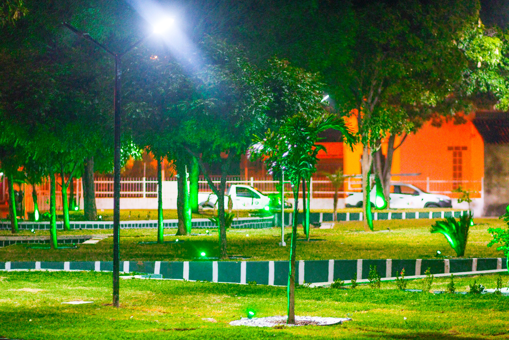 Ao todo, entre torres e espaços ornamentados, a praça ganhou 80 lâmpadas em LED e luzes ornamentais, realçando a beleza do novo espaço requalificado pela Secretaria de Obras e Desenvolvimento Urbano (Sedur).