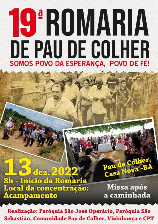 A comunidade de Pau de Colher, localizada no município de Casa Nova (BA), está ansiosa para receber romeiros e romeiras para a 19ª edição de sua tradicional Romaria. Este ano, o evento, que tem como tema central “Somos povo da esperança, povo de fé”, irá retornar ao formato original, com uma grande caminhada, reunindo participantes das comunidades vizinhas e da região.