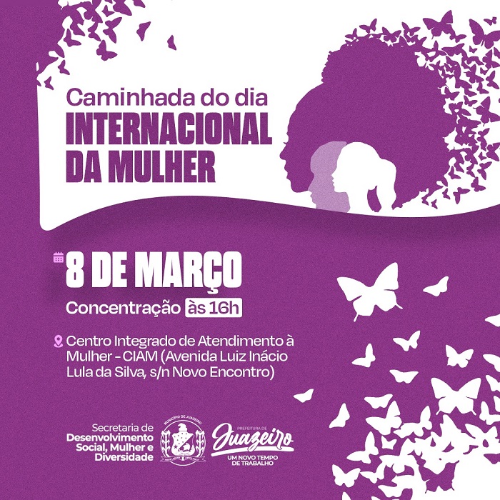 Durante todo o mês de março, uma extensa programação vai celebrar o Dia Internacional da Mulher, em Juazeiro. As atividades, realizadas pela Prefeitura de Juazeiro, através da Secretaria de Desenvolvimento Social, Mulher e Diversidade (Sedes), começarão nesta terça-feira (07) e seguem até o dia 30. Este ano, o destaque da programação é a caminhada de mobilização, no dia 8 de março, com concentração a partir das 16h, no Centro Integrado de Atendimento à Mulher (CIAM).