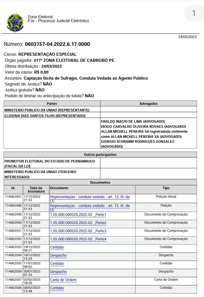 O Ministério Público Eleitoral acaba de acatar uma denúncia contra o prefeito de Cabrobó, Galego de Nanai. O processo instaurado na 77ª zona eleitoral, relata captação ilícita de sufrágio, conduta vedada ao agente público. A Ação Civil Pública denuncia abuso de poder político e econômico e pede improbidade administrativa do prefeito.
