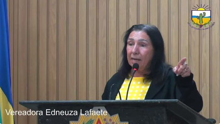 A vereadora Edneuza Lafaiete (MDB), popularmente conhecida como Lafaite da Saúde, utilizou a tribuna da câmara na sessão plenária desta quinta-feira (16) para relatar alguns problemas na prestação de serviços de saúde oferecidos pelo município de Lagoa Grande (PE), à população. Lafaiete, concordou em parte com a vereadora Lindaci Amorim (DEM), que integra a bancada da oposição, sobre a questão da saúde não estar em boas condições. “Em algumas partes, concordo com a vereadora Lindaci. Eu queria discutir isso em uma reunião com o prefeito, vereadores e secretários, mas, antecipadamente, vou adiantar. Quero que o líder da situação converse com o prefeito sobre a situação da saúde. A saúde não está bem, está travada. É humilhante; leva-se para lá, o secretário precisa despachar, mas ele está ocupado resolvendo outras questões. Ele é bom para buscar, é bom para conversar, é desenrolado, mas é humilhante o paciente esperar 10 ou 15 dias para que ele assine um papel para agendar uma consulta ou fazer um exame. Tudo precisa passar por ele, e se ele não der a ordem, ninguém marca”, disse Edneuza Lafaite.