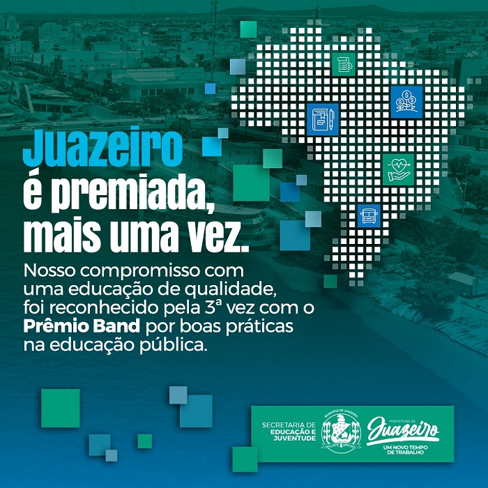 Em 2023, pelo terceiro ano consecutivo, a educação de Juazeiro vai receber o prêmio ‘Band Cidades Excelentes’. A premiação, que é iniciativa do Grupo Bandeirantes de Comunicação, em parceria com o Instituto Áquila, foi criada em 2021 e visa incentivar a melhoria da realidade dos municípios brasileiros por meio do reconhecimento das boas práticas na gestão pública.
