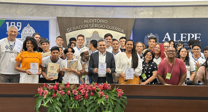 Participaram deste momento da 2ª Jornada Alepe Antirracista as palestrantes Luíza Reis e Juliane Lima; estudantes da EREM Joaquim Távora; o professor Lepê Correia; e o Superintendente Geral da Alepe, Isaltino Nascimento.