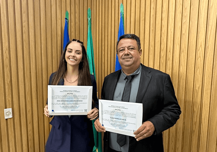 O Tribunal Regional Eleitoral diplomou, na manhã desta terça-feira, Catharina Garziera (PSB) como prefeita de Lagoa Grande, no Sertão do São Francisco, ao lado do seu vice, Olavo Marques (PSD). Eles assumirão a gestão do município a partir do dia 1º de janeiro de 2025.