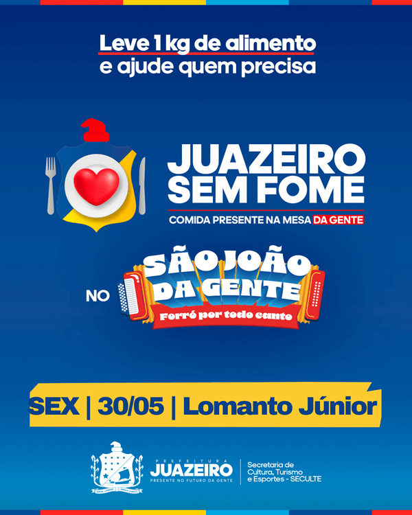 A festa continua nesta sexta-feira (30), no bairro Lomanto Júnior, com shows com Manuzinho do Acordeon e Banda Forró Mais Eu, Nilton Freitas e Tarcísio Black. Além das atrações, o stand de arrecadação do Juazeiro Sem Fome permanece no local para receber doações da população.