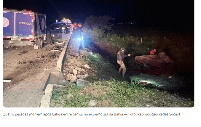 Bahia: Quatro pessoas morreram e três ficaram feridas após uma batida entre dois carros