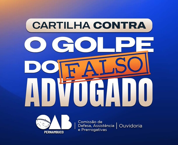 Com o aumento no número de casos envolvendo fraudes com o nome de advogados e escritórios de advocacia, a Ordem dos Advogados do Brasil – Seccional Pernambuco (OAB-PE) lança a cartilha “Contra o golpe do falso advogado”. A iniciativa é realizada em parceria com a Diretoria de Prerrogativas com a Ouvidoria e a Comissão de Defesa, Assistência e Prerrogativas da OAB-PE. A cartilha está disponível no site da OAB-PE e será amplamente divulgada nas redes sociais da Ordem.