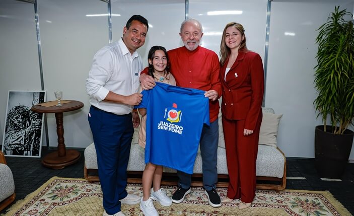 Durante a agenda presidencial em Juazeiro, na última quinta-feira (17), o prefeito Andrei Gonçalves, acompanhado da primeira-dama, Luciana Gonçalves, e da filha, Lorena Gonçalves, apresentou o programa Juazeiro Sem Fome ao presidente Luiz Inácio Lula da Silva e a ministros de Estado, como Alexandre Padilha e Rui Costa.