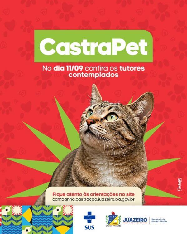 A Prefeitura de Juazeiro, por meio da Secretaria de Saúde/Sesau, dará início a uma ação inédita no município: o Projeto de Castração Gratuita de cães e gatos, que será executado pela primeira vez na cidade. Nesta quinta-feira (11), foi divulgada a primeira lista de contemplados na pré-inscrição, que poderão participar do mutirão de cirurgias marcado para começar na próxima segunda-feira (15). A lista está disponível no link oficial da ação: https://campanha.castracao.juazeiro.ba.gov.br