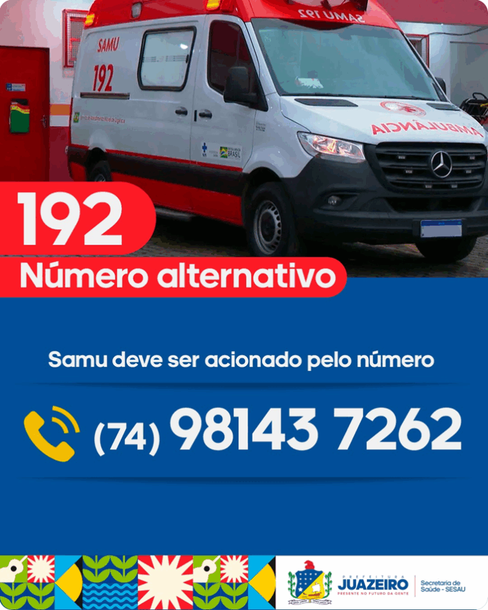 O número 192, destinado ao atendimento de urgência e emergência do Serviço de Atendimento Móvel de Urgência/ SAMU está vinculado a uma operadora que, no momento, apresenta falhas na rede. Como medida de assegurar o acesso ao serviço, a Sesau disponibilizou um número alternativo para contato: (74) 98143 7262.