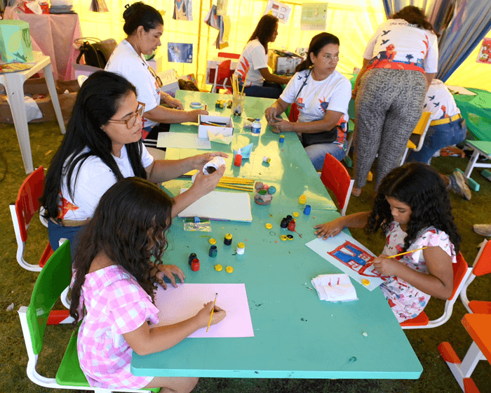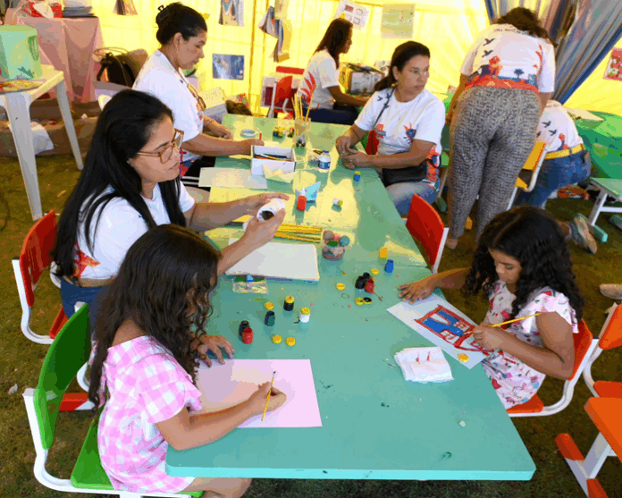Entre pincéis, desenhos e poesia, a pequena Aylla Luane de Araújo vivia uma experiência que vai além da leitura, a de criar e sentir. Concentrada em sua pintura, ela descreveu o que mais a encantou: