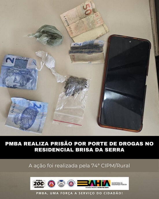 InícioPolicialPMBA, por meio da 74ª CIPM/RURAL, realiza prisão por porte de drogas...