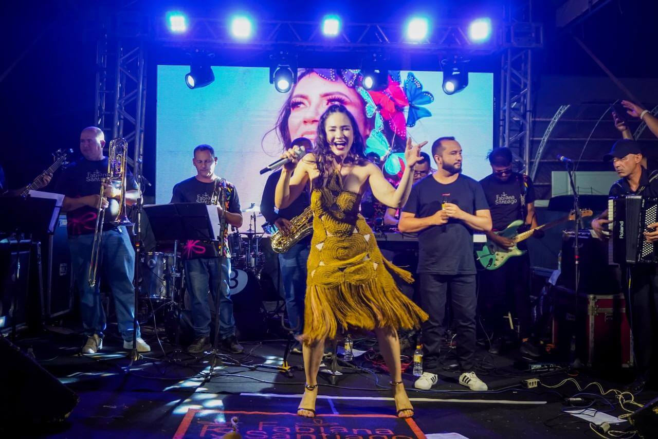 Na sequência, foi a vez da cantora Fabiana Santiago tomar conta do palco e contagiar o público com um espetáculo vibrante e cheio de emoção. Em um show pensado especialmente para o Natal do Interior, a artista iniciou com músicas típicas da época e seguiu com grandes sucessos da música brasileira, colocando todos para cantar e dançar.