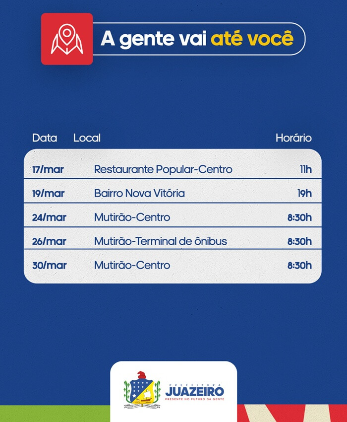 Durante o mês de março, o programa conta com uma programação itinerante em diferentes localidades, ampliando o acesso da população aos serviços da Ouvidoria e reforçando o compromisso da gestão municipal com a transparência e a escuta ativa.