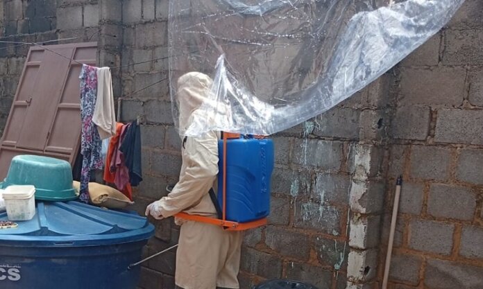 A equipe de Endemias segue atuando diariamente nas ruas com visitas domiciliares, orientações à população, eliminação de focos e também com o bloqueio perifocal, realizado por meio da aplicação de inseticida com bombas intercostais nas áreas onde há casos suspeitos ou confirmados, como medida de controle do vetor.