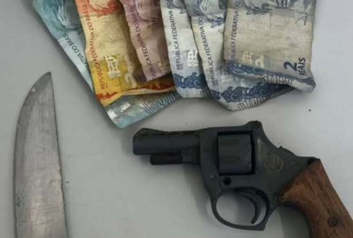 De acordo com as informações da Polícia Militar, uma equipe foi acionada após relatos da presença de pessoas armadas em um estabelecimento comercial. Ao chegar ao local, os suspeitos foram identificados e abordados. Durante a revista, foram encontrados um revólver calibre .22, uma faca e uma quantia em dinheiro.