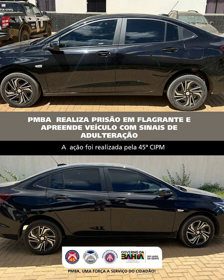 A Polícia Militar da Bahia (PMBA), por meio da 45ª Companhia Independente de Polícia Militar (45ª CIPM), realizou a prisão em flagrante de um indivíduo e a apreensão de um veículo com sinais de adulteração no município de Curaçá.